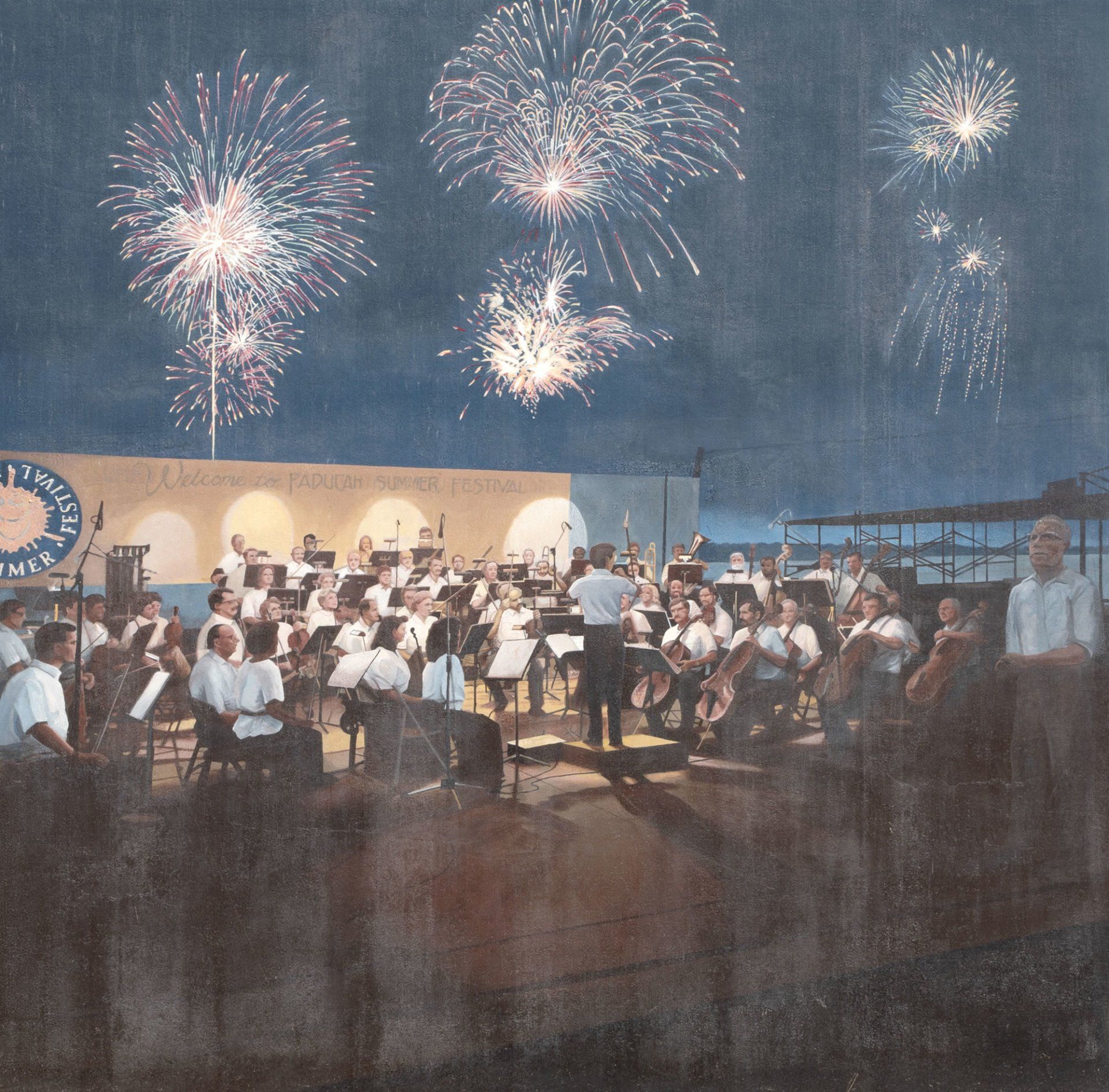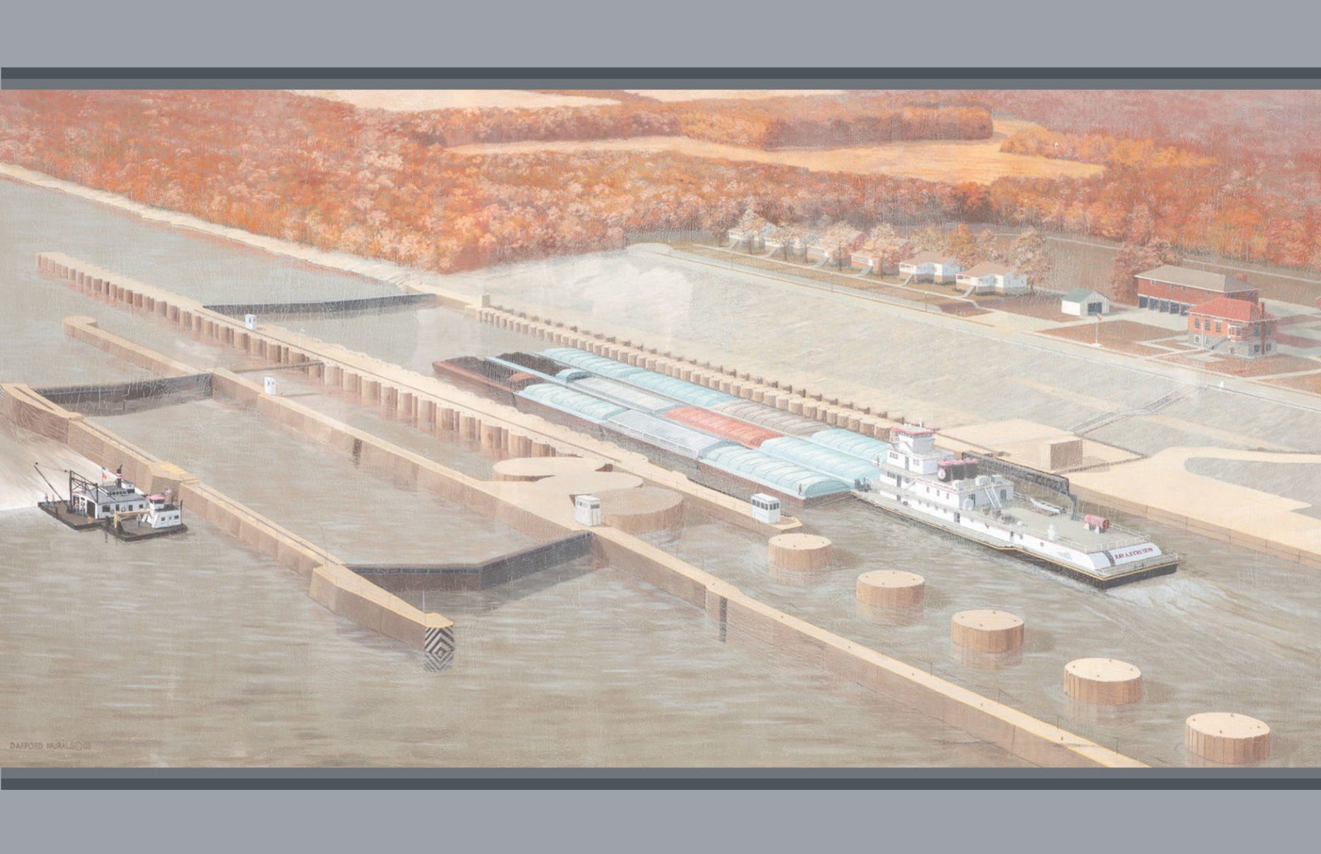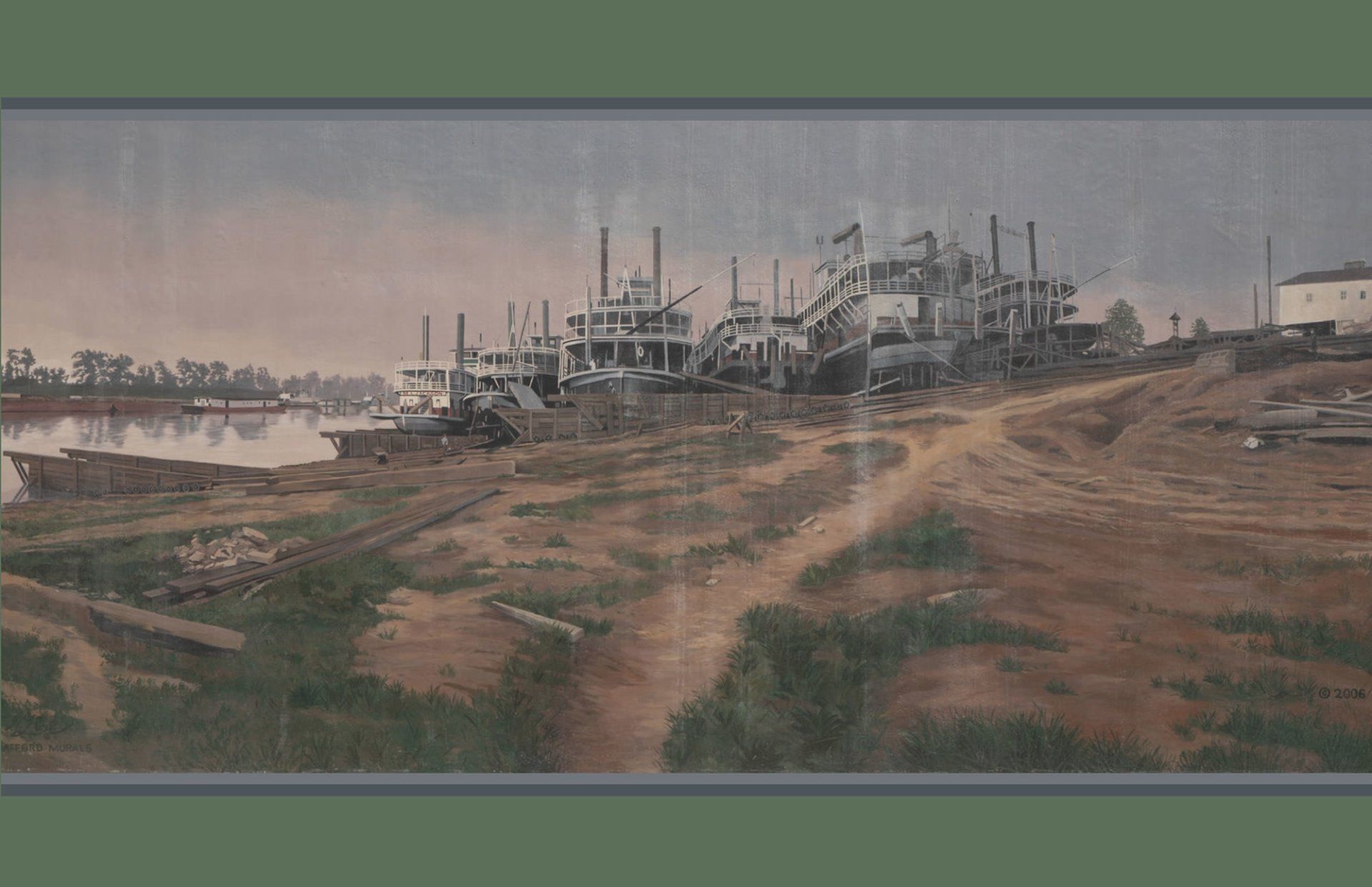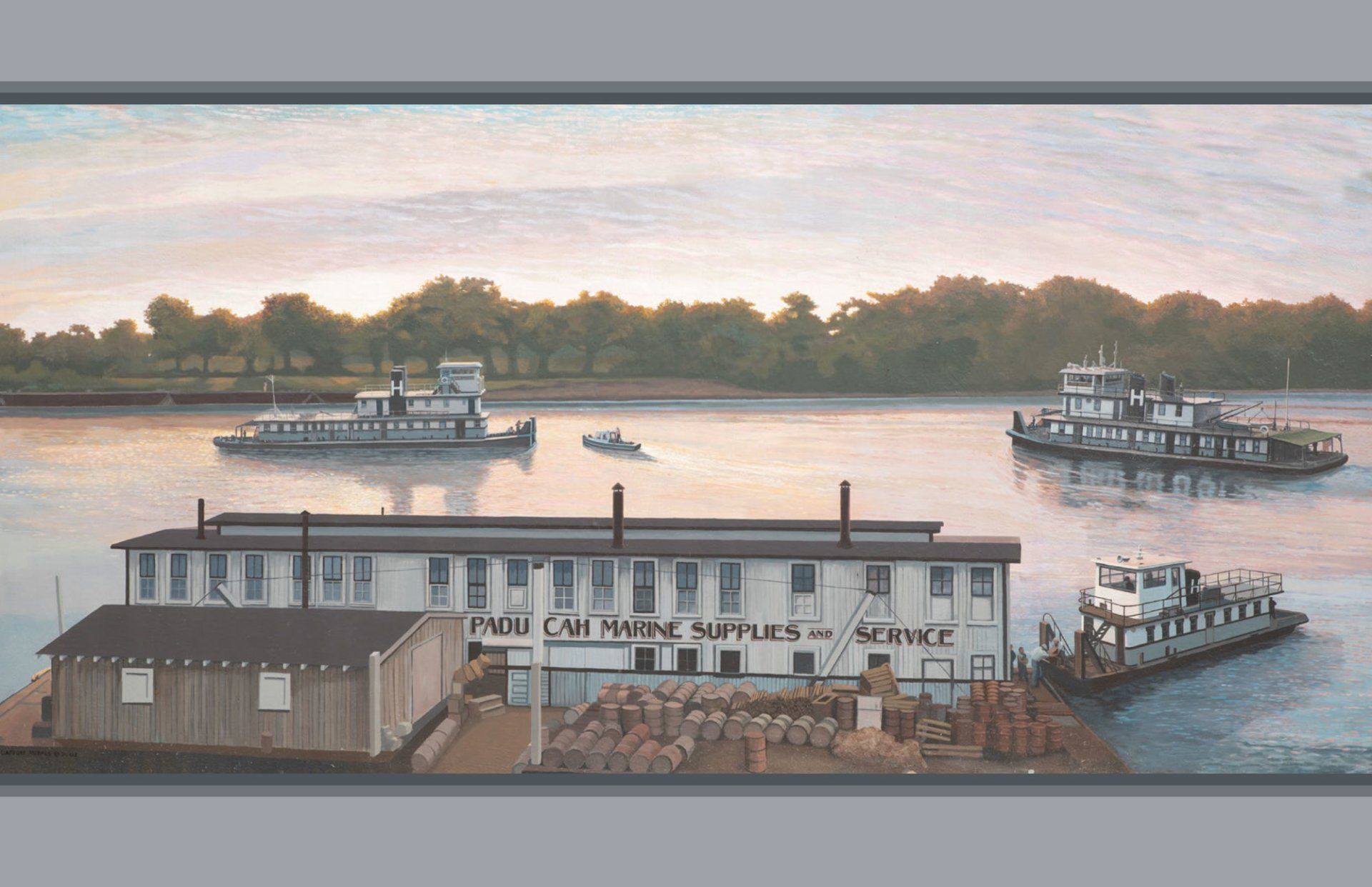 The renowned Dafford Muralists capture Paducah's rich history in paintings on this UNESCO Creative City's floodwall overlooking the confluence of the Ohio and Tennessee Rivers. This visionary project began in the spring of 1996. The first twenty-panel timeline was completed in 2001 and the last ten rail history panels in the three block section were unveiled in 2022.
