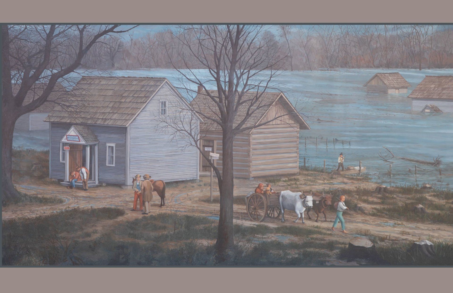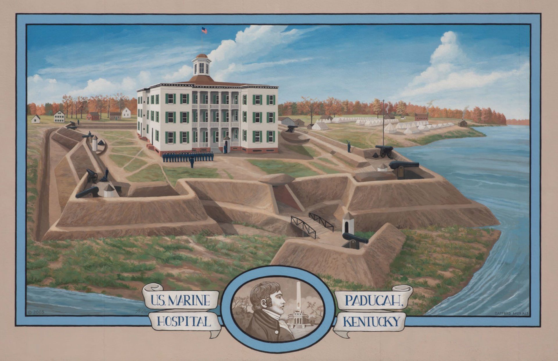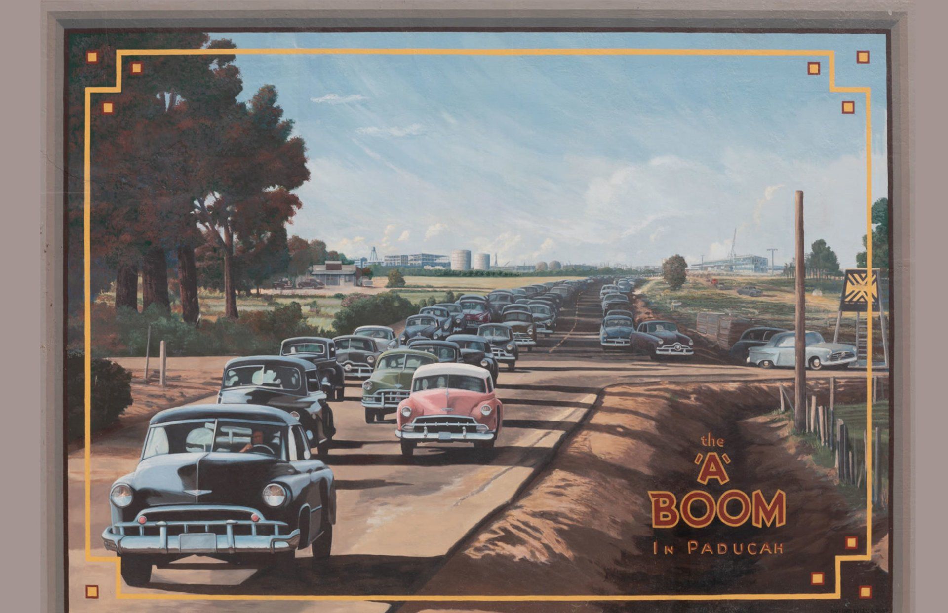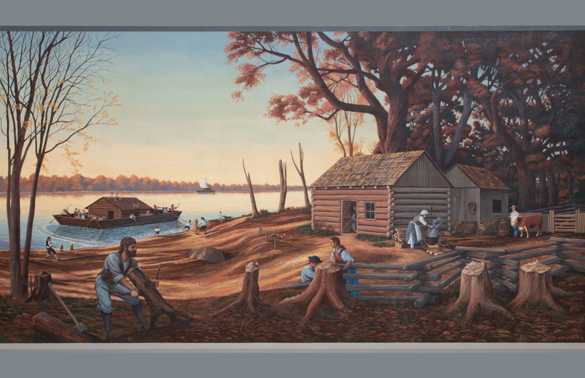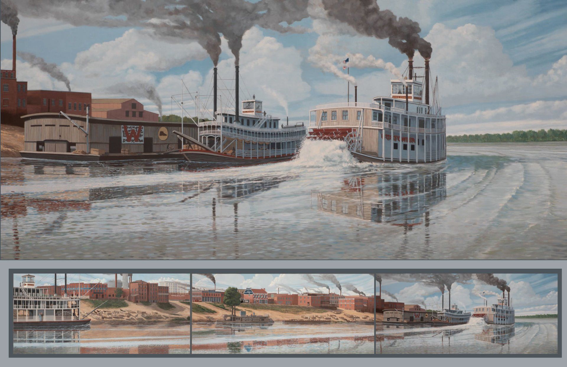 The renowned Dafford Muralists capture Paducah's rich history in paintings on this UNESCO Creative City's floodwall overlooking the confluence of the Ohio and Tennessee Rivers. This visionary project began in the spring of 1996. The first twenty-panel timeline was completed in 2001 and the last ten rail history panels in the three block section were unveiled in 2022.