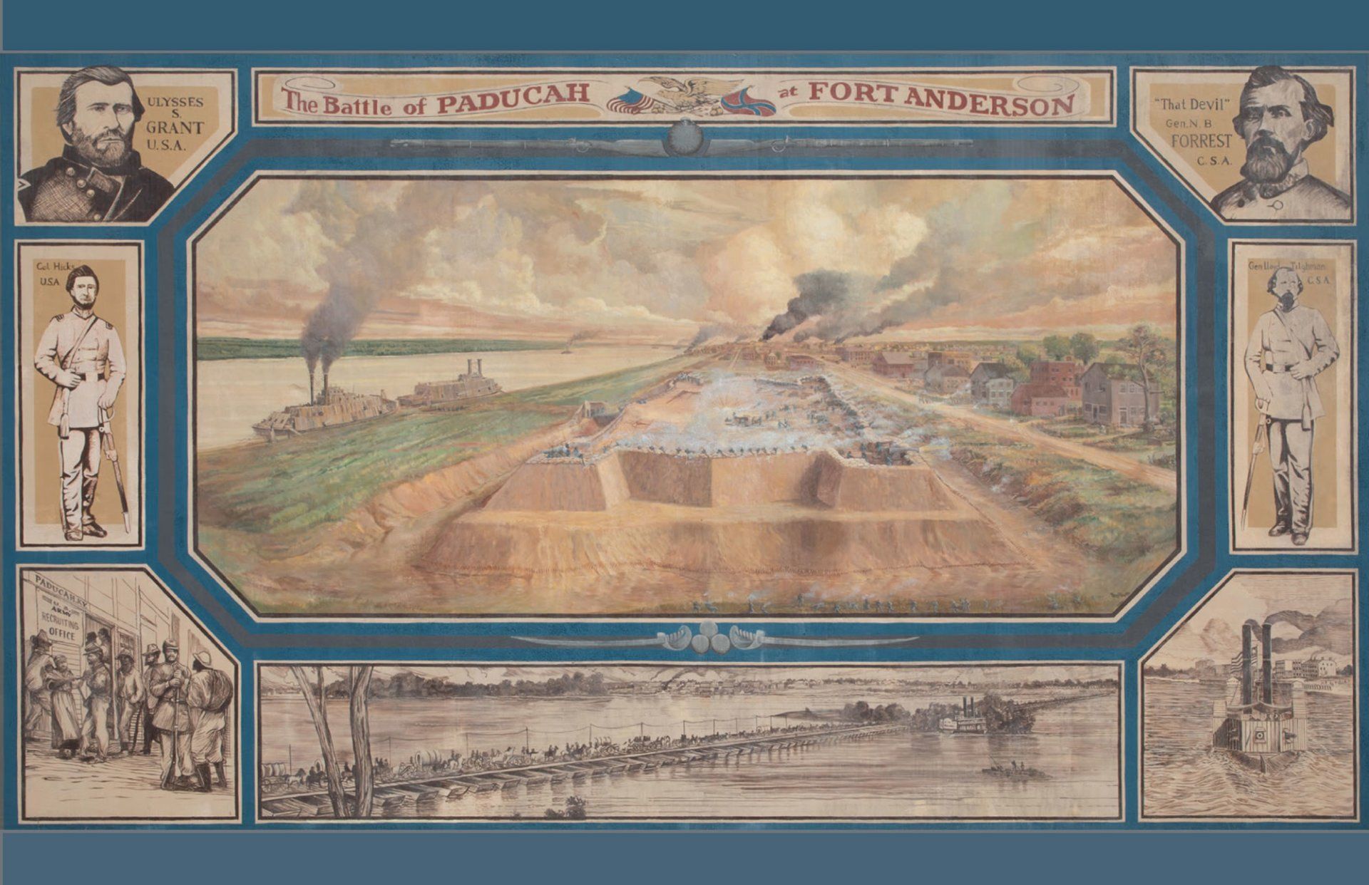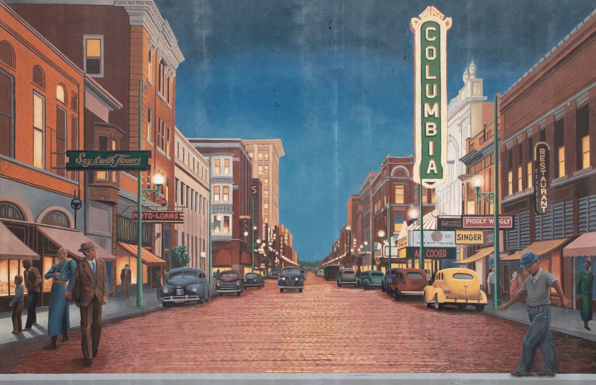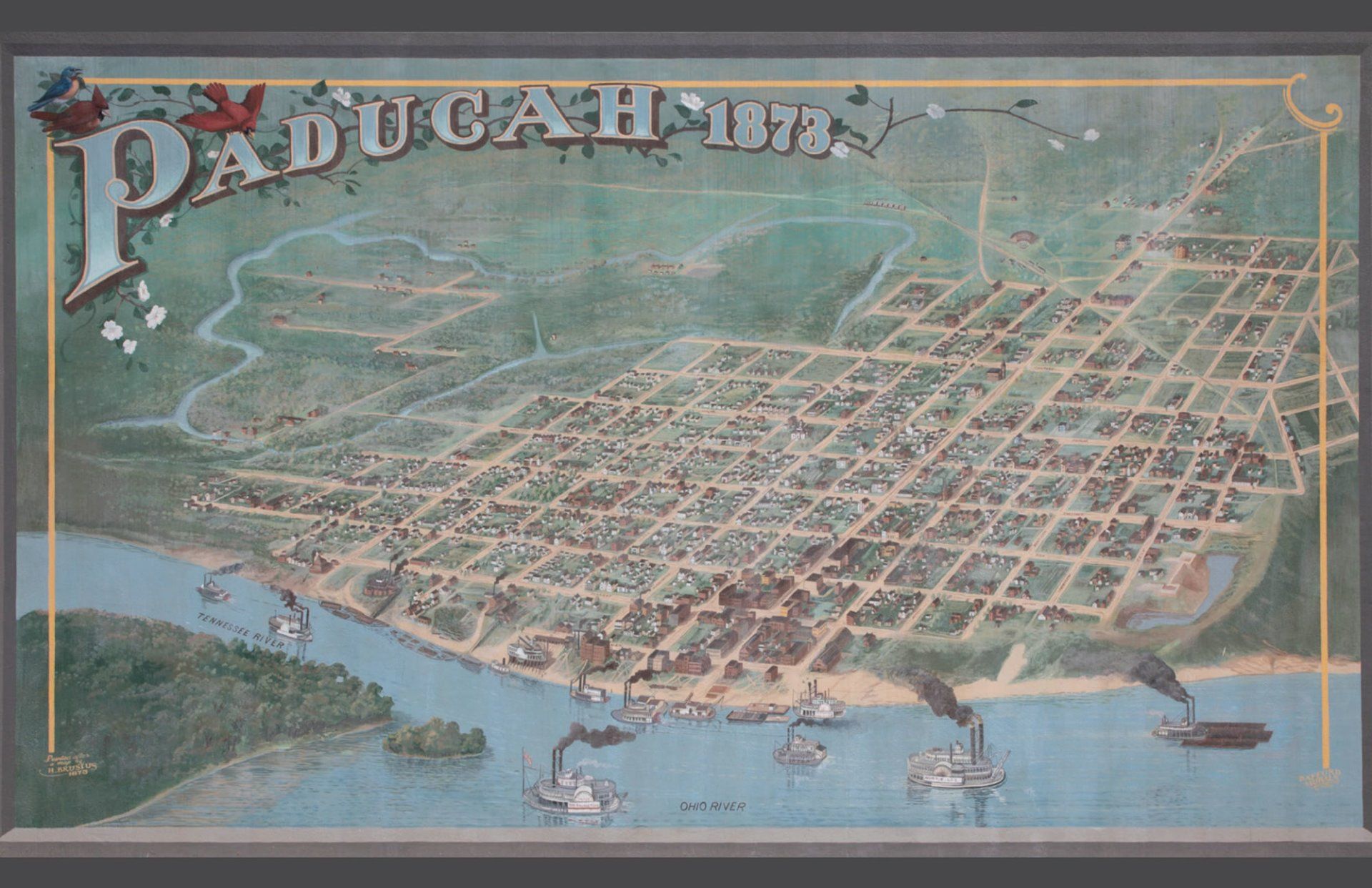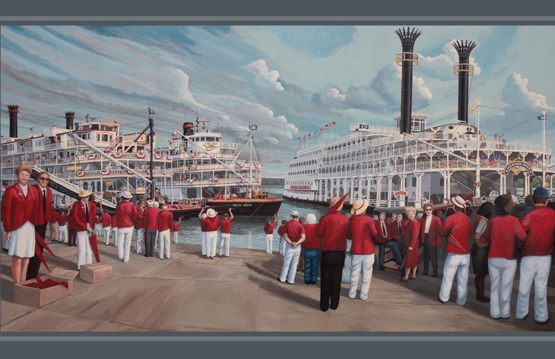 The renowned Dafford Muralists capture Paducah's rich history in paintings on this UNESCO Creative City's floodwall overlooking the confluence of the Ohio and Tennessee Rivers. This visionary project began in the spring of 1996. The first twenty-panel timeline was completed in 2001 and the last ten rail history panels in the three block section were unveiled in 2022.