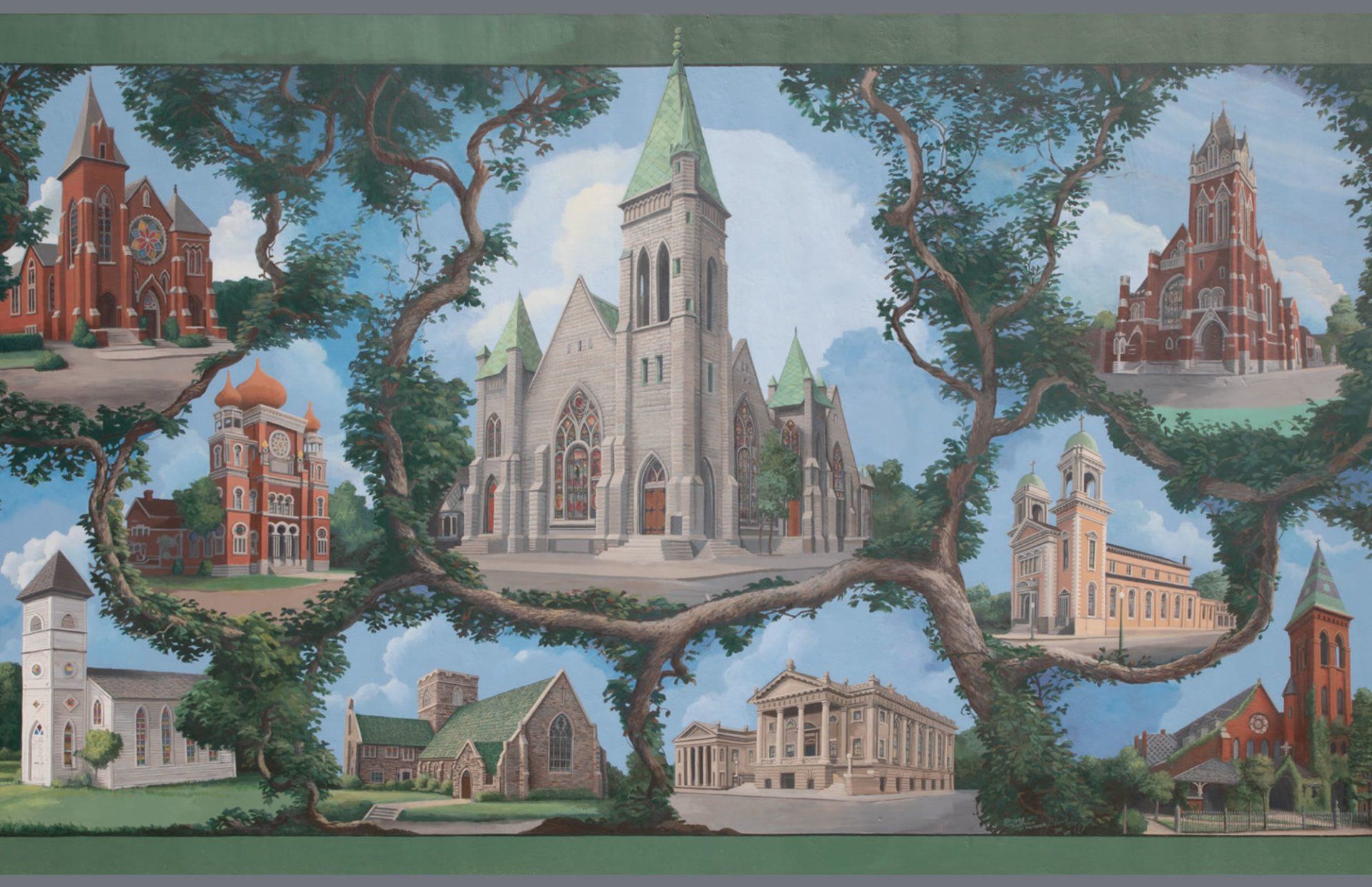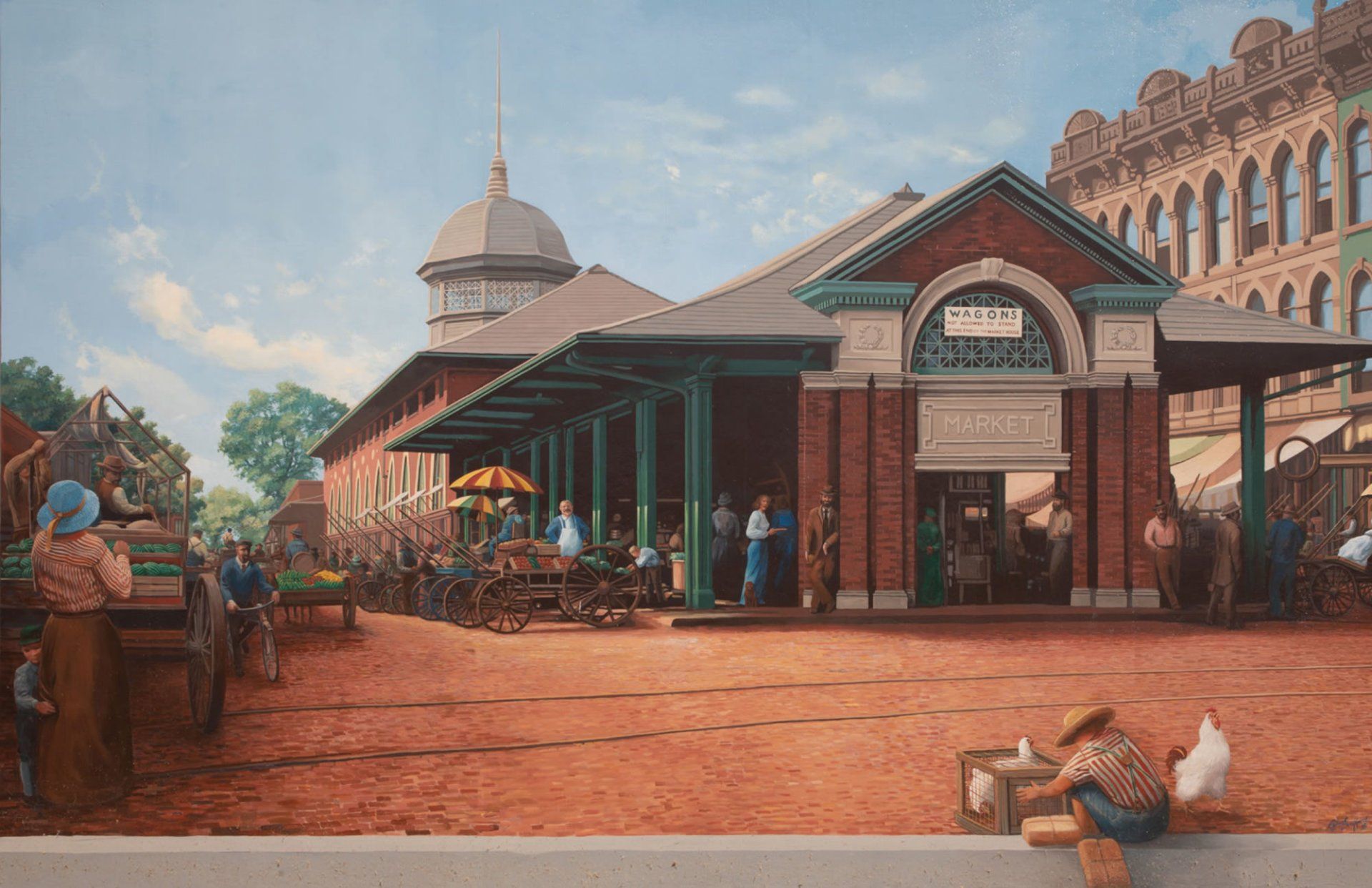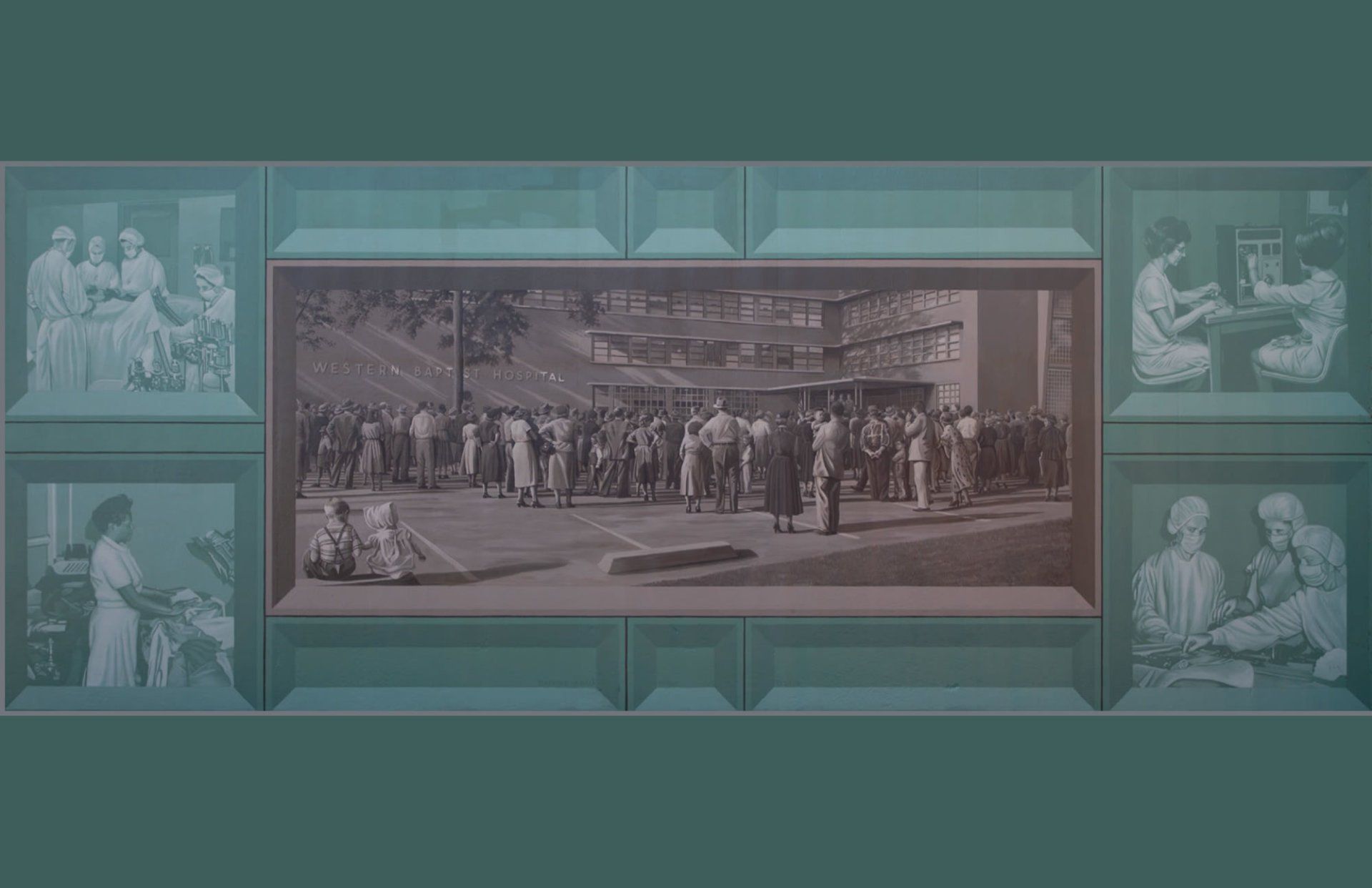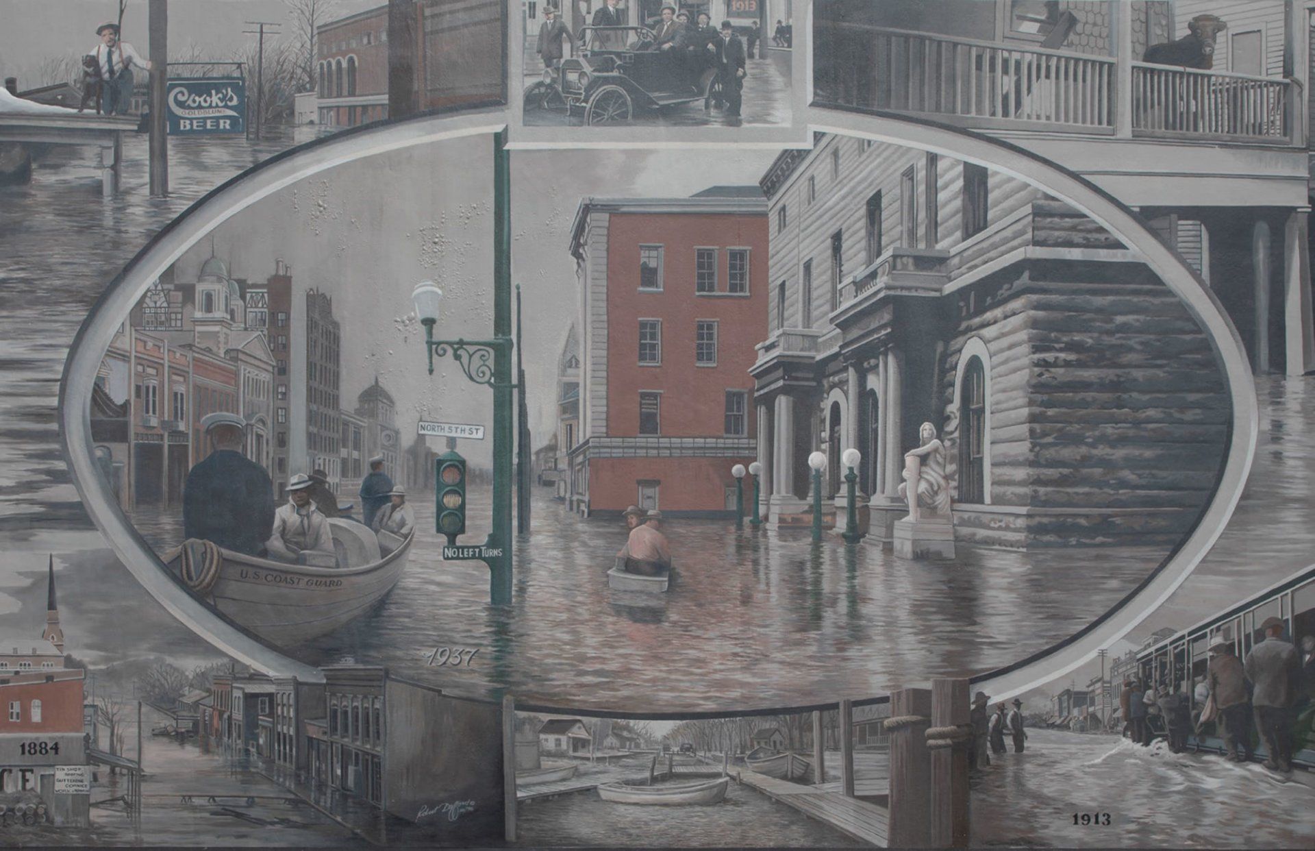 The renowned Dafford Muralists capture Paducah's rich history in paintings on this UNESCO Creative City's floodwall overlooking the confluence of the Ohio and Tennessee Rivers. This visionary project began in the spring of 1996. The first twenty-panel timeline was completed in 2001 and the last ten rail history panels in the three block section were unveiled in 2022.